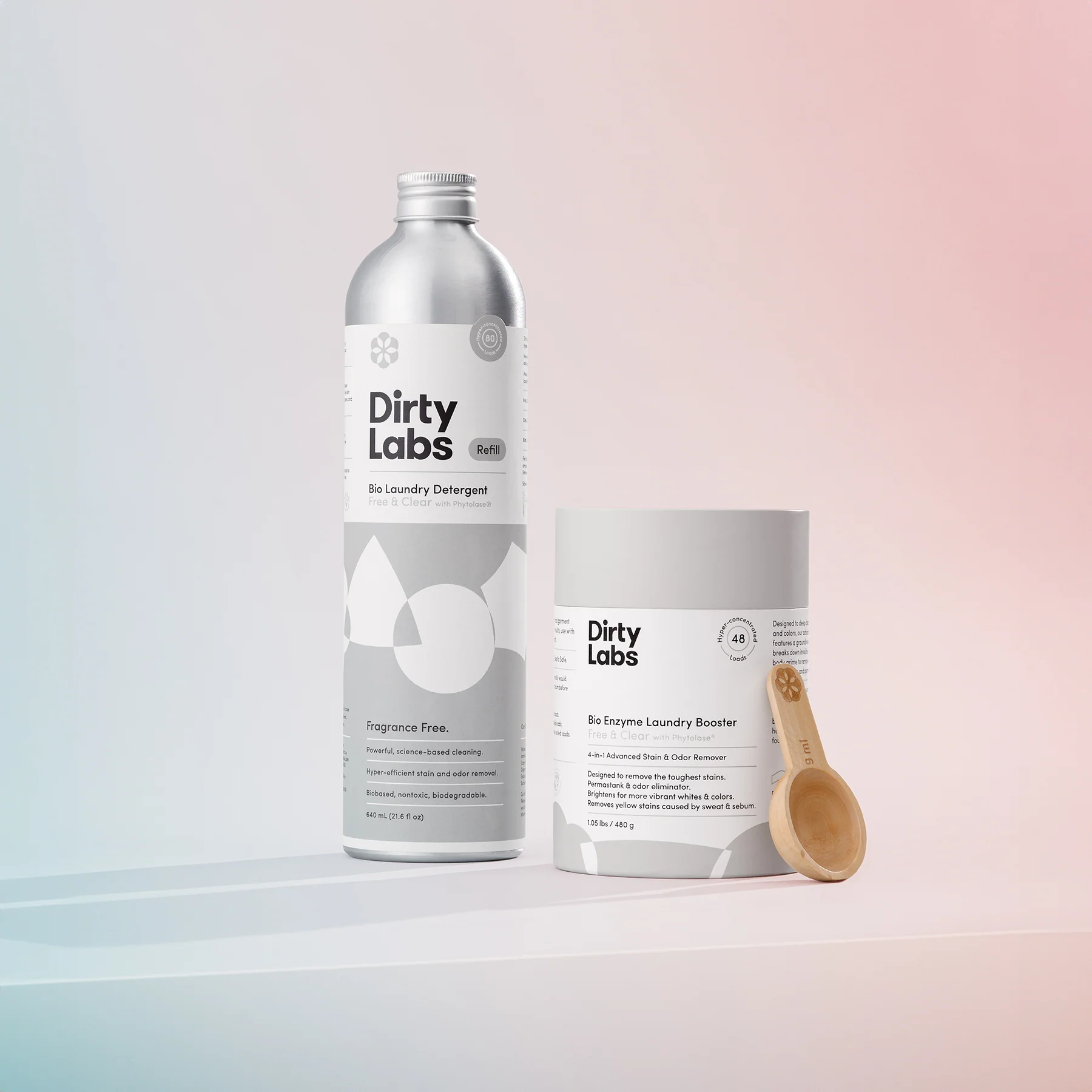 Tackle your dirtiest, smelliest laundry with clean science. Dirty Labs Free & Clear Bio Laundry Detergent & Bio Booster is a liquid + powder duo that uses advanced bioenzymes - not toxic chemicals - to make your whites and colors vibrant and eliminate the toughest stains and odors.