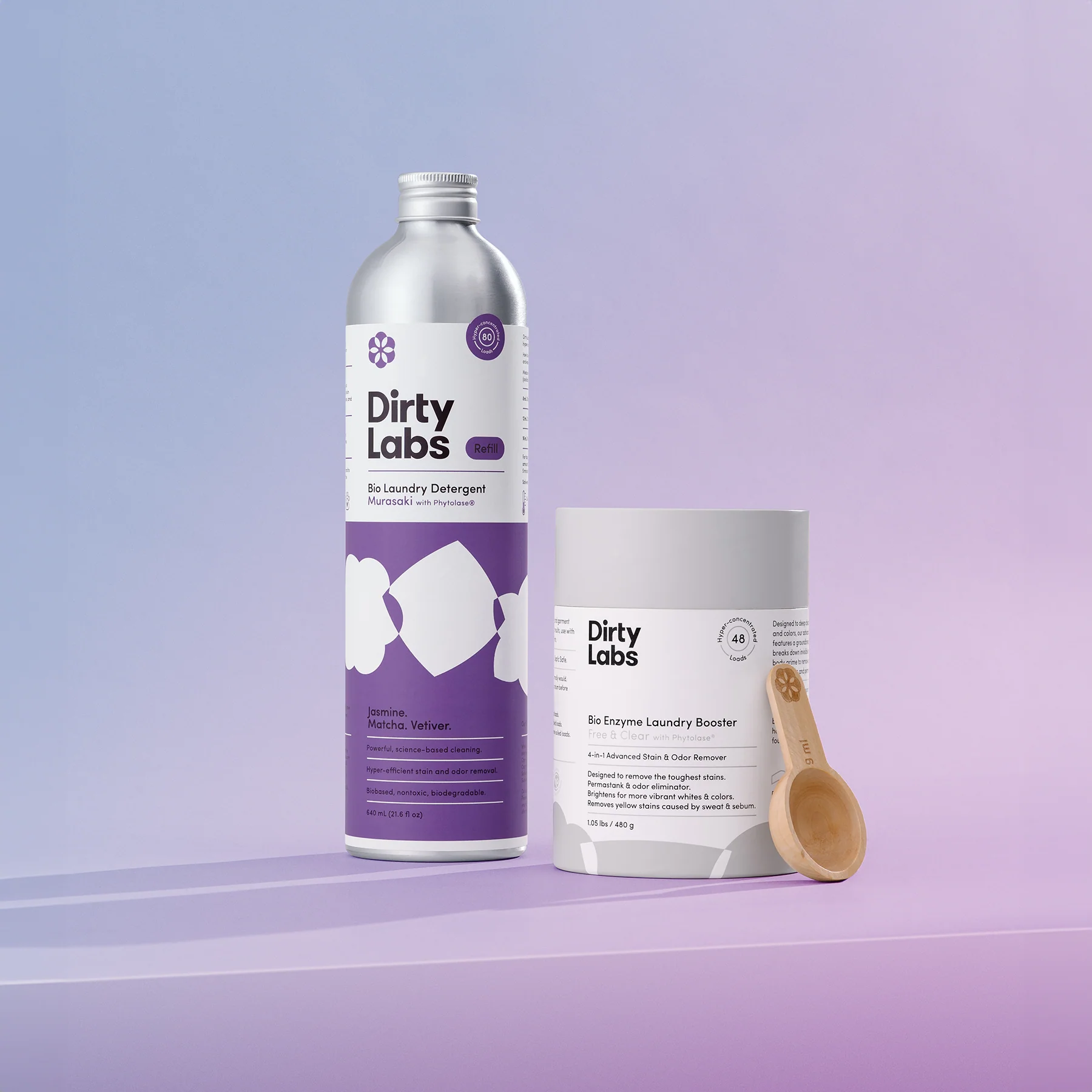 Tackle your dirtiest, smelliest laundry with clean science. Dirty Labs Murasaki Bio Laundry Detergent & Bio Booster is a liquid + powder duo that uses advanced bioenzymes - not toxic chemicals - to make your whites and colors vibrant and eliminate the toughest stains and odors.