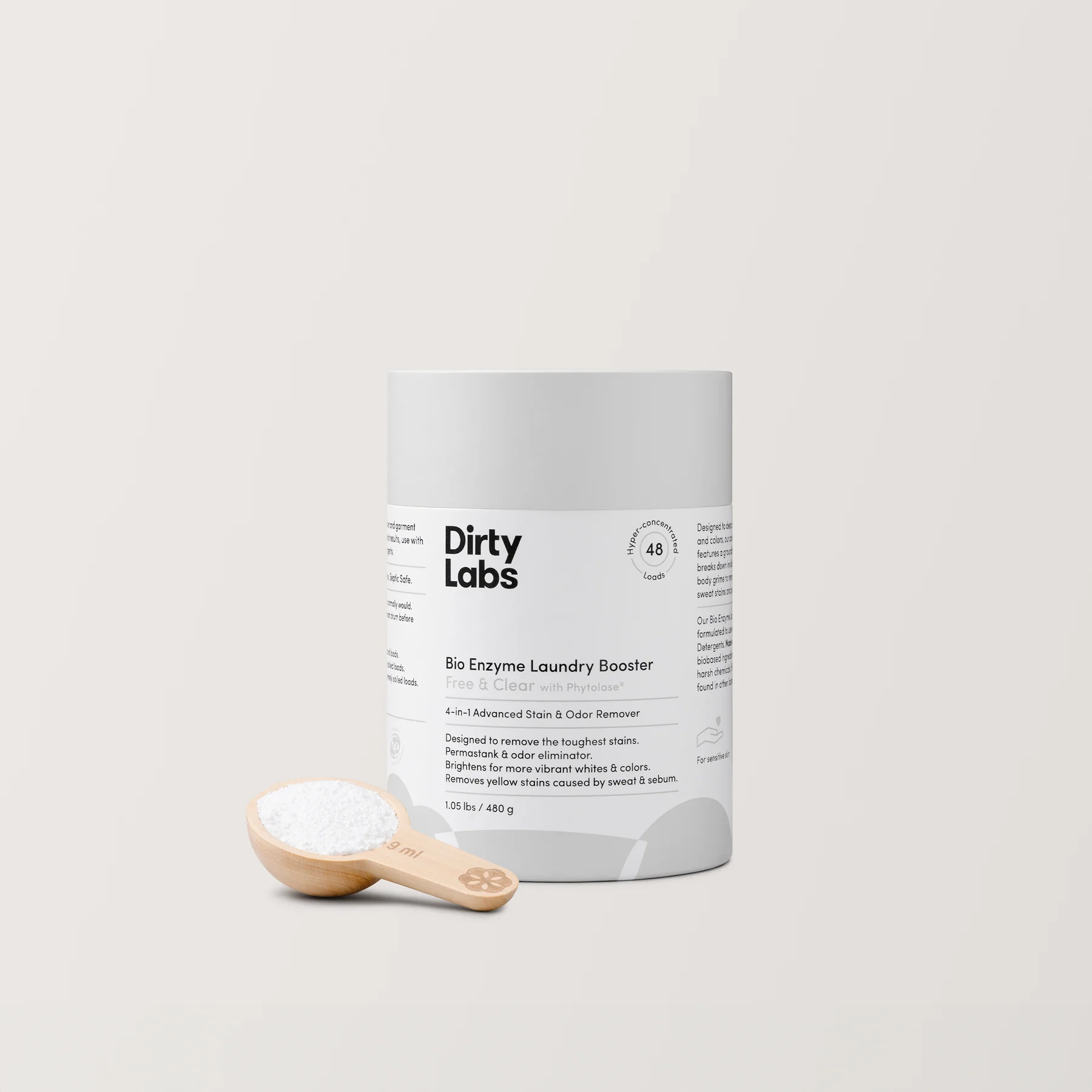 Tackle your dirtiest, smelliest laundry with clean science. Dirty Labs Signature Bio Laundry Detergent & Bio Booster is a liquid + powder duo that uses advanced bioenzymes - not toxic chemicals - to make your whites and colors vibrant and eliminate the toughest stains and odors.
